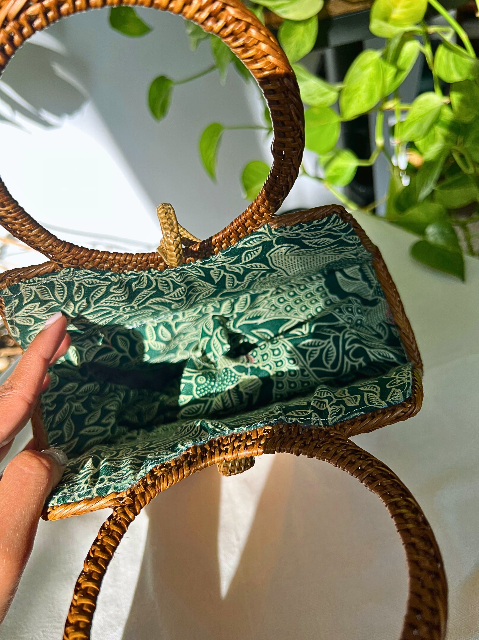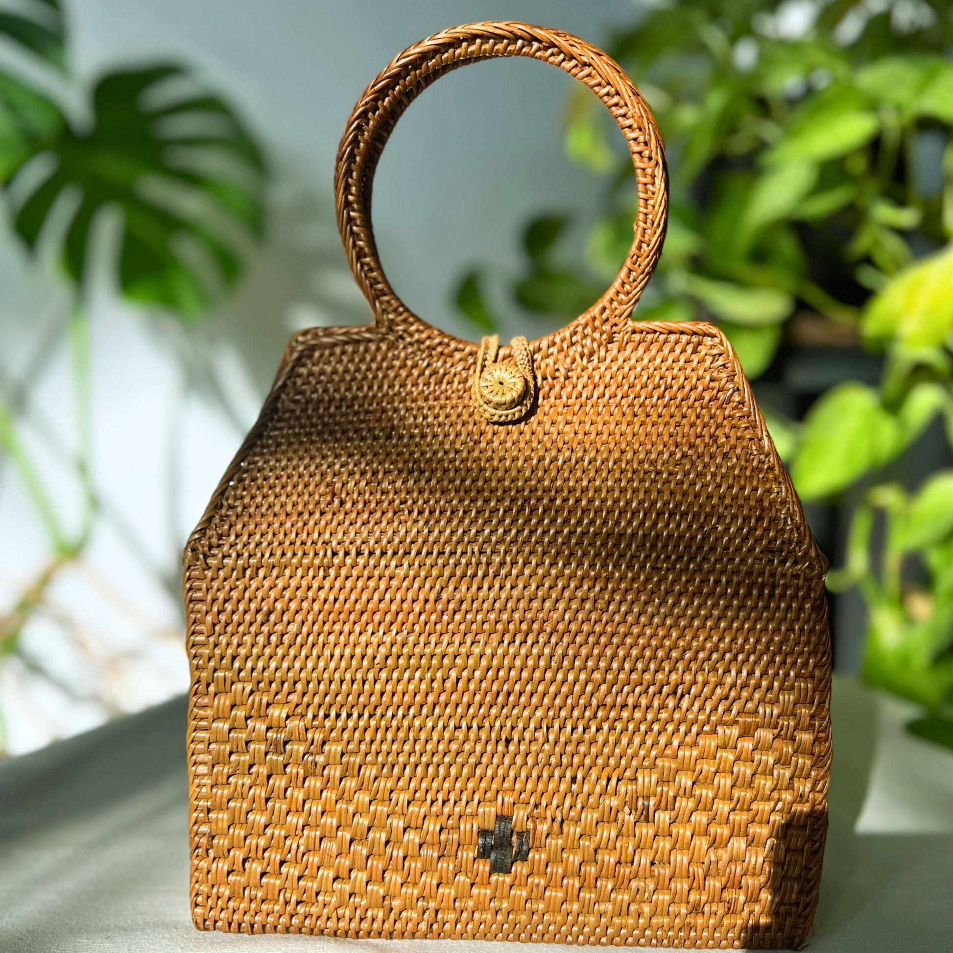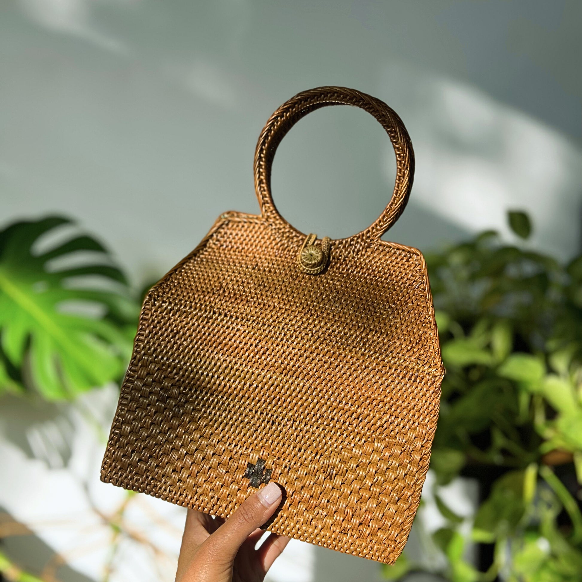 Introducing bajo bag from our BALI collection, a unique artisan rattan top handle bag. Bajo is a statement piece that is perfect for any summer occasion. Handcrafted with a touch of motives on the bag, this stunning bag is made with high-quality rattan material and is truly one of a kind. The natural color and texture of the rattan give the bag a simple and organic feel, while the top handle adds a touch of elegance. With ample space for all your essentials, this bag is perfect for a lunch or dinner outing. Elevate your summer wardrobe with our artisan rattan top handle bag.