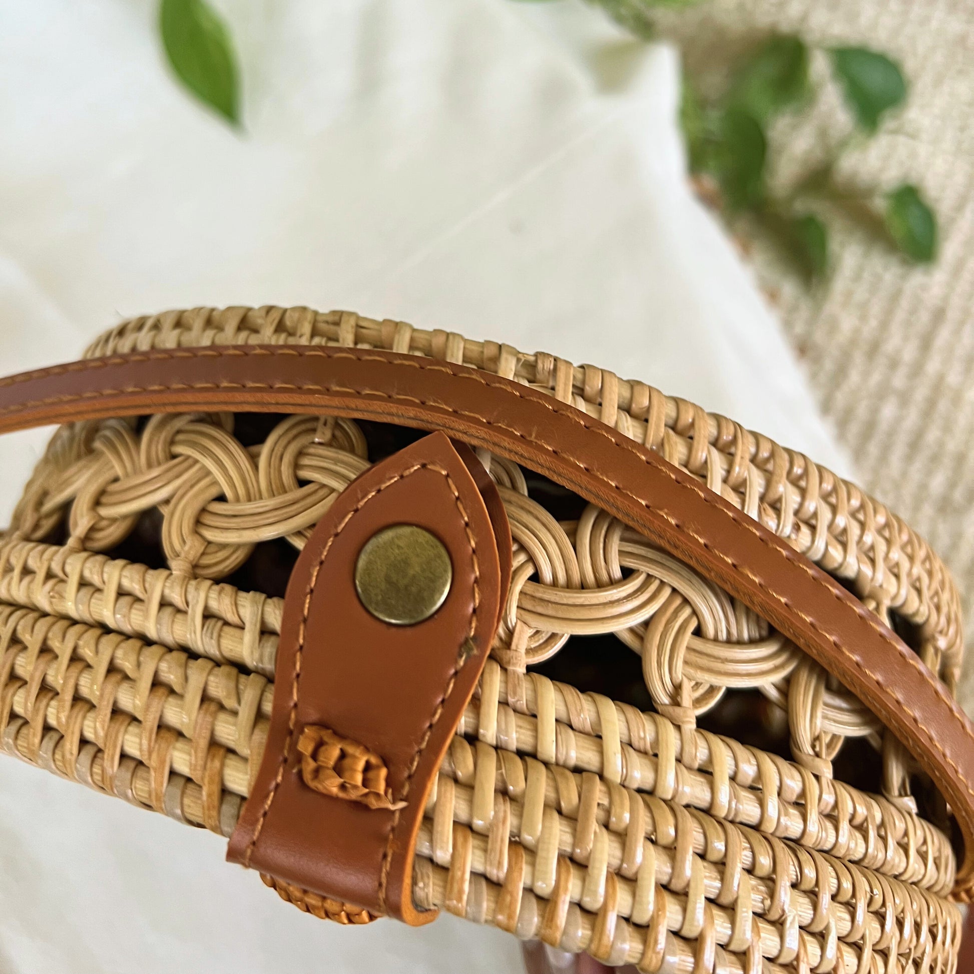 Wear it over your shoulder or across your body for a chic and effortless look. The Round Rattan Sling Bag is perfect for everyday use and adds a touch of tropical Bali vibe to any outfit. Get ready to turn heads with this stunning piece from our Bali bag collection.